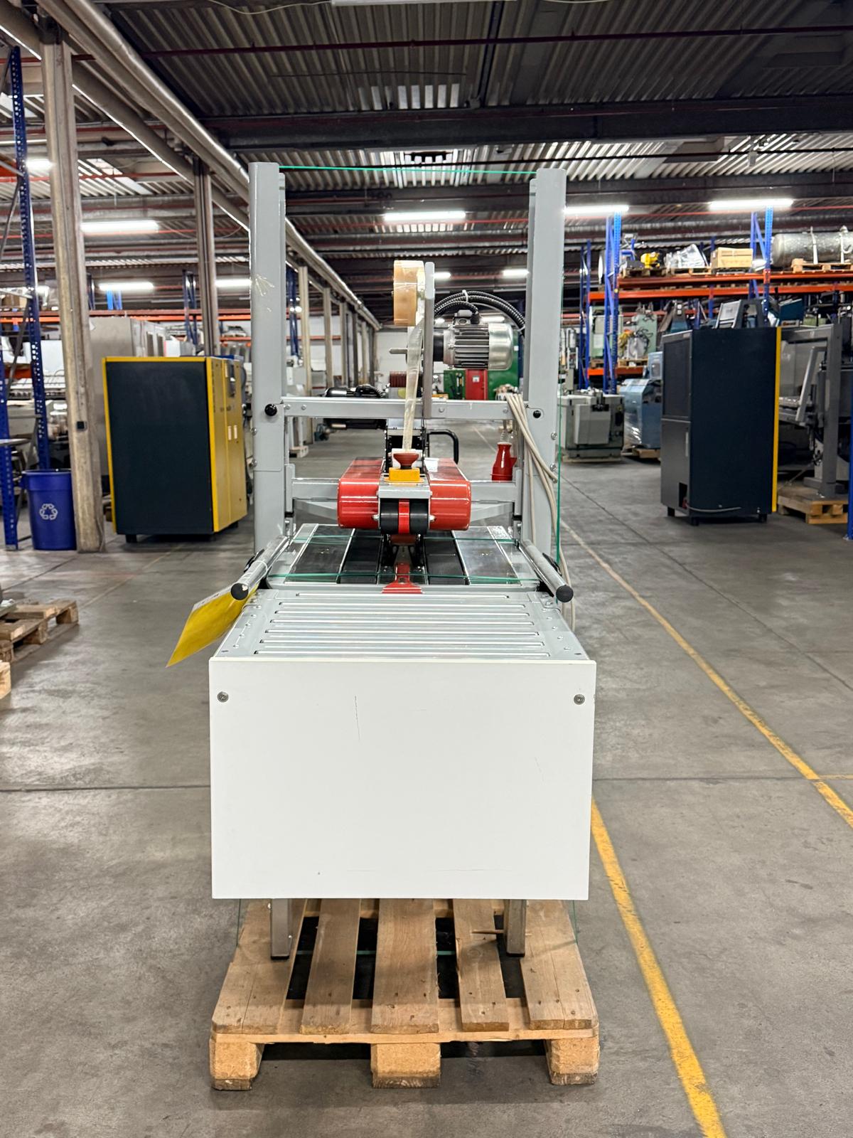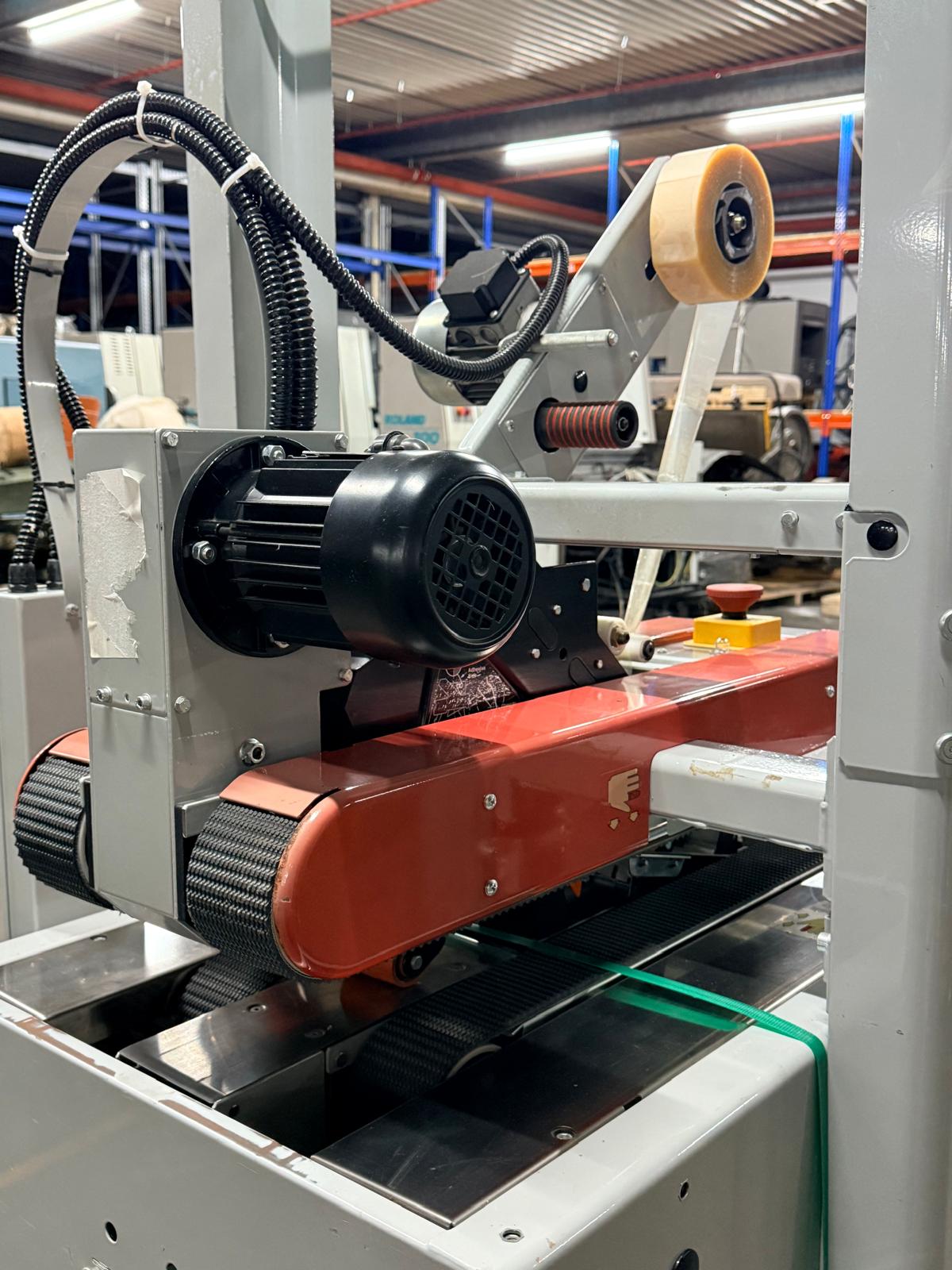 Semi-Automatic Carton Sealer For Reliable Top And Bottom Sealing With Adhesive Tape, Suitable For Standard PP Or PVC Packaging Tape With Tape Width Up To Approx. 50 Mm And Standard Industrial Tape Roll Size. Equipped With Motorized Conveyor Belts For Smooth And Consistent Carton Transport, Fully Adjustable Height And Width To Accommodate Different Carton Sizes, And Pneumatic Tape Pressure System With Integrated Regulator And Pressure Gauge For Precise And Consistent Sealing Results.