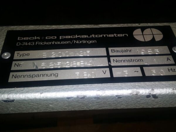 Beck S12-24Category: Foil Sealing Manufacturer: Beck Model: S12-24 M-No.: 3893042 Year of construction: 1985 Details: with B200/25 and Number: 6852884, Shrink Wrap / Foil Sealing Ref-NO.: seal-beck-S12-24 Price on enquiry Request an offer Request on Whatsapp Share machine: share on Facebook share on Linkedin share at WhatsApp send Link as E-Mail Print this page: