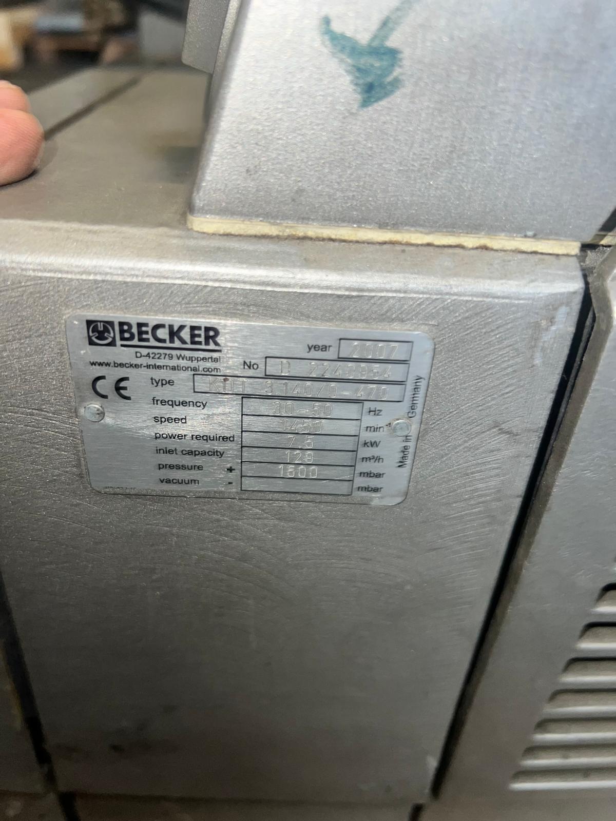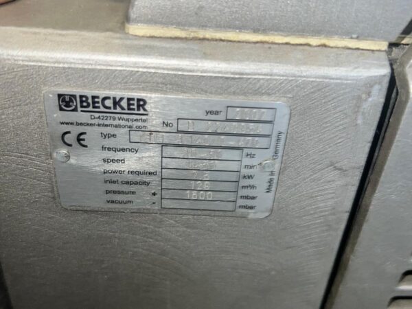 Becker KDT 3.140/0-470Category: Compressor Typ/Art: Compressor Manufacturer: Becker Model: KDT 3.140/0-470 M-No.: D 2240954 Year of construction: 2007 Details: Frequency: 30-50 Hz, Speed: 1450 min, Power Required: 7,5 kW, Inlet Capacity 129 m³/h, Pressure: 1500 mbar Ref-NO.: comp-Becker-KDT-2240954 Price on enquiry Request an offer Request on Whatsapp Share machine: share on Facebook share on Linkedin share at WhatsApp send Link as E-Mail Print this page: