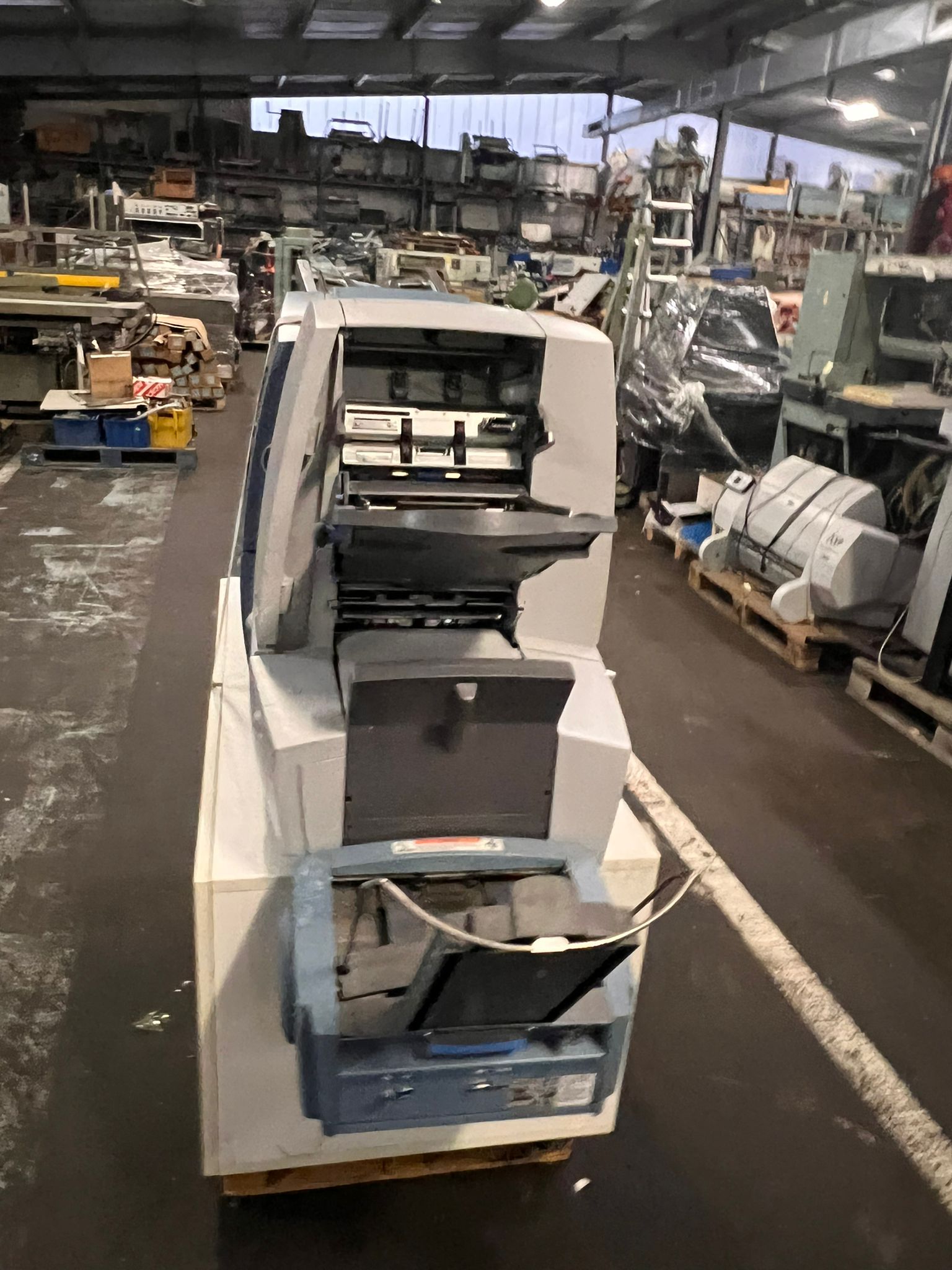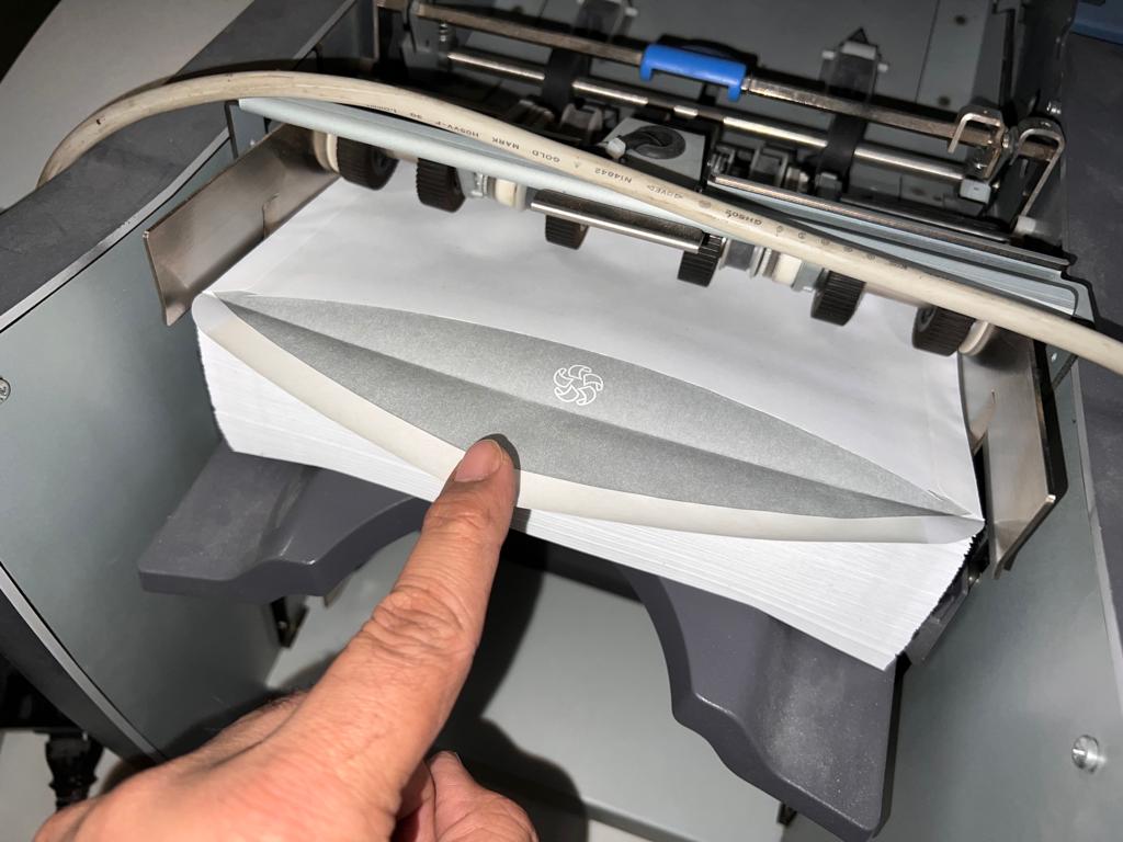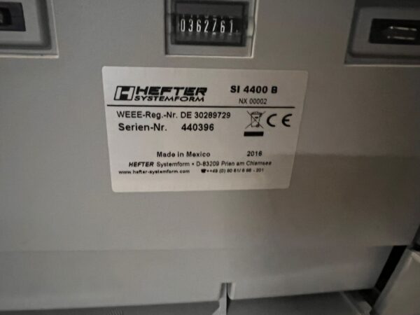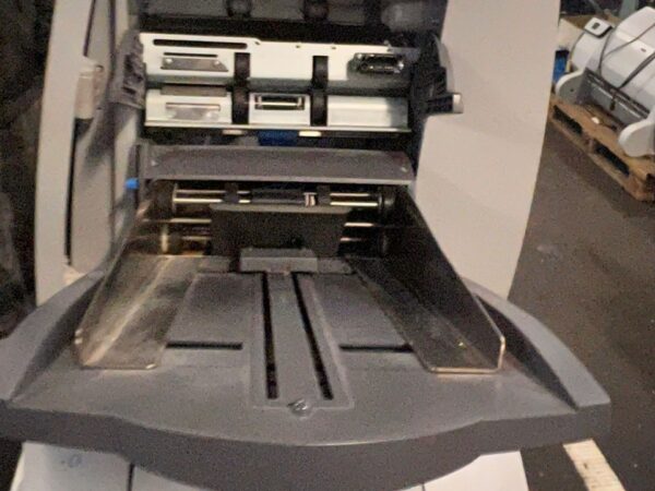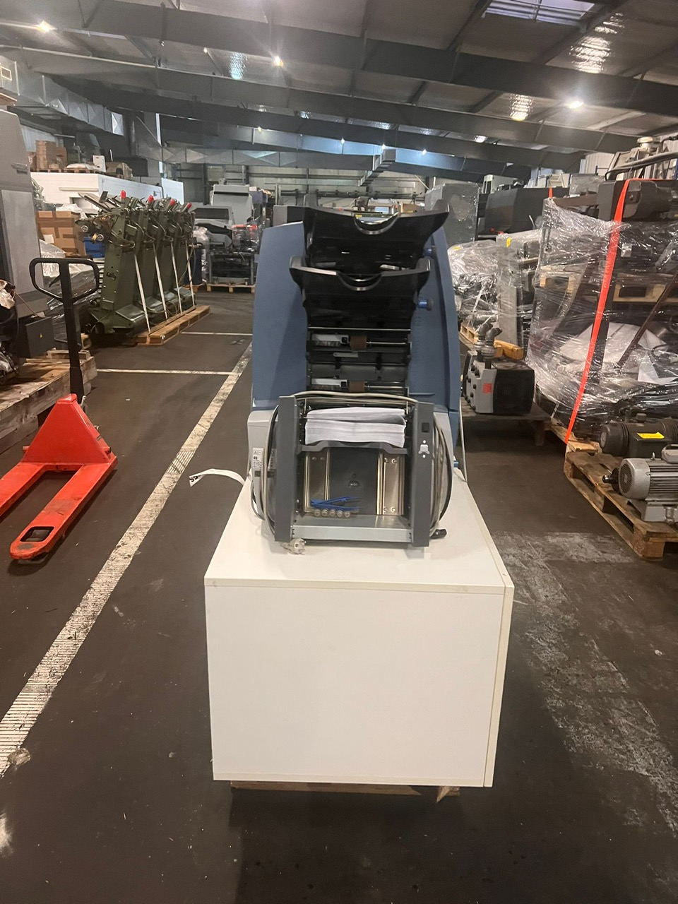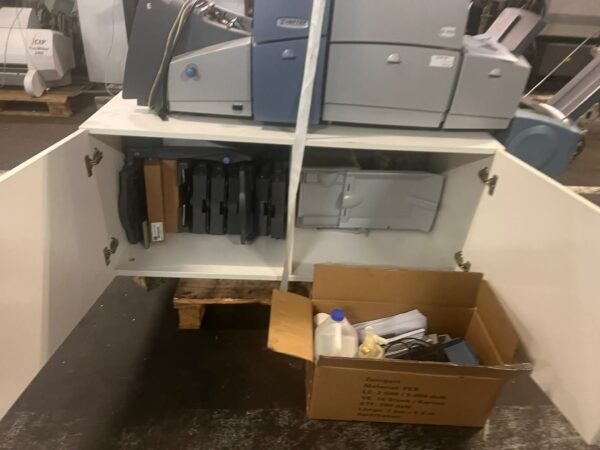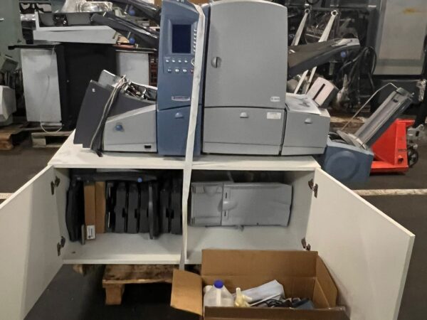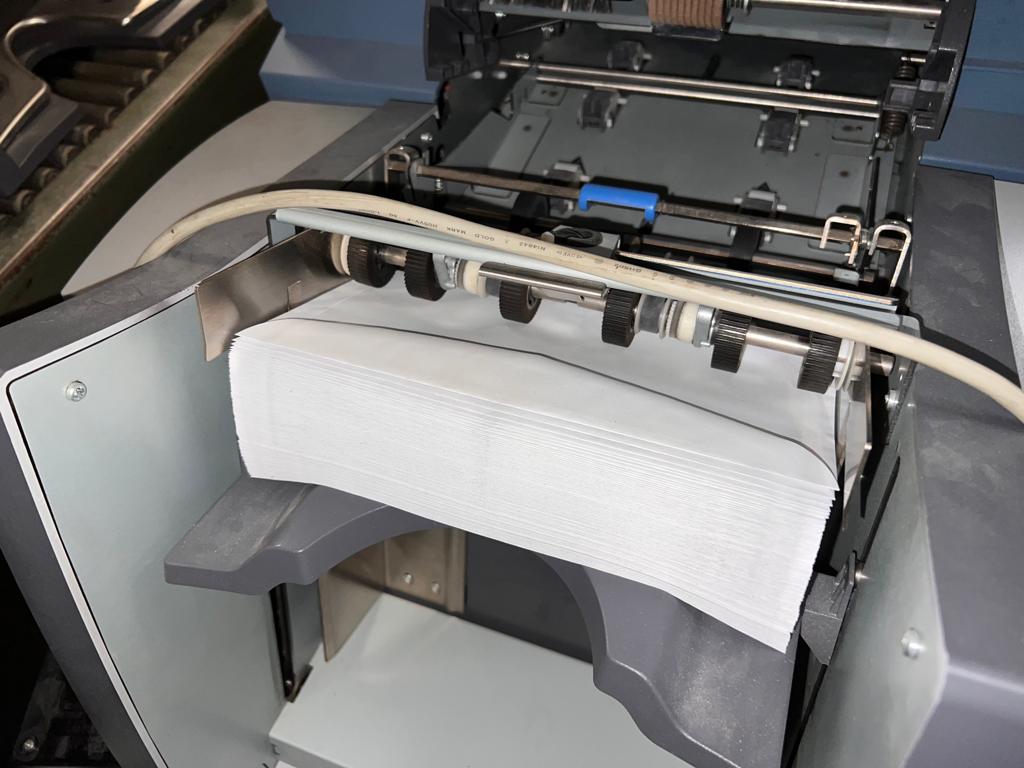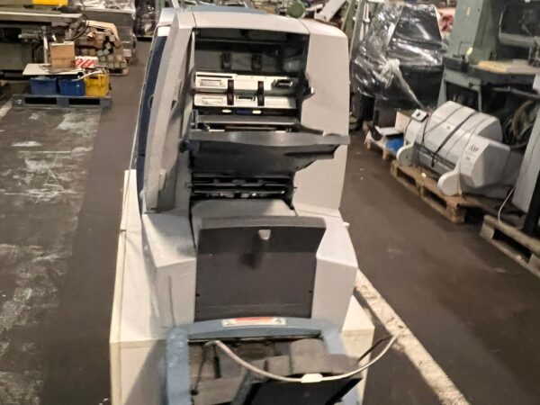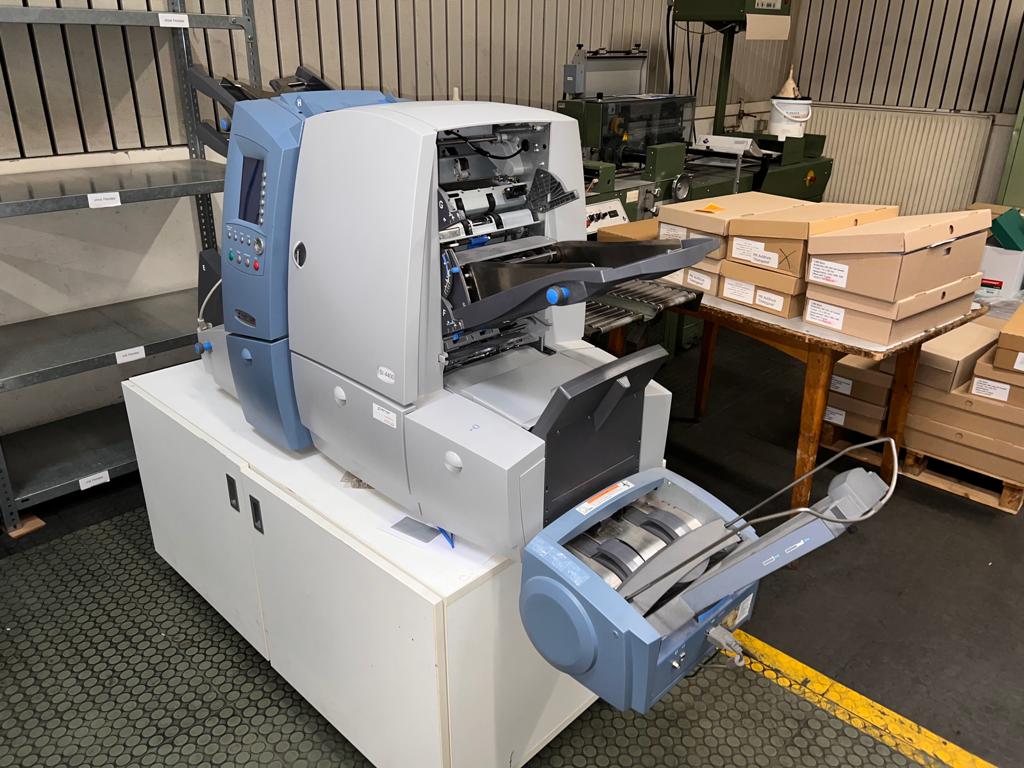 Folding and Inserting Machine: speed: upto 4.000 per hour, maximum monthly performance: 70.000, maximum annual output: 600.000, power required: 230 V, noise level: <74 dBA, number of feeder chutes: 2, maximum feeding capacity per feeder: 2, single sheet stations, 2 insert stations, folds: wrapfold, z-fold,