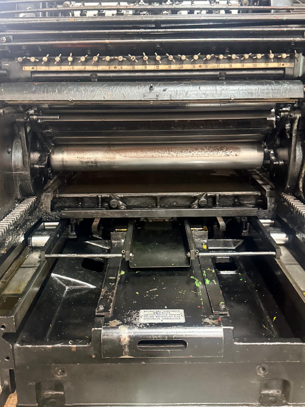 Heidelberg S CylinderCategory: Cylinder Typ/Art: Cylinder Manufacturer: Heidelberg Model: S Cylinder M-No.: 14535S Year of construction: 1959Format: 54x72 Details: Standard Accessories Ref-NO.: cyl-HD-S-Cyl-1959 Price on enquiry Request an offer Request on Whatsapp Share machine: share on Facebook share on Linkedin share at WhatsApp send Link as E-Mail Print this page: