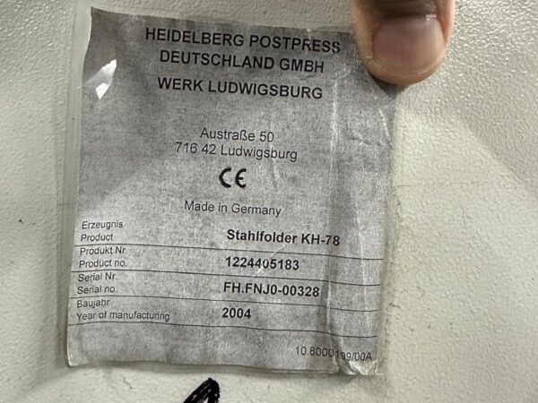 Heidelberg Stahlfolder KH 78/82-6KTLCategory: Folding Machines Typ/Art: Folding Machine Manufacturer: Heidelberg Stahlfolder Model: KH 78/82-6KTL Year of construction: 2004Format: 82x112 Details: Pallet Feeder, 6 Pockets 2 knives, SPH 70 Pressing Delivery Ref-NO.: fol-HD-Stahl-2004-KH-T82 Price on enquiry Request an offer Request on Whatsapp Share machine: share on Facebook share on Linkedin share at WhatsApp send Link as E-Mail Print this page: Machine videos