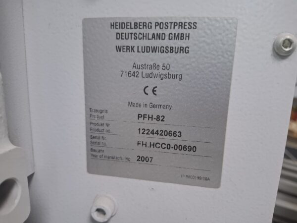 Heidelberg Stahlfolder PFH-82Category: Folding Machines Typ/Art: Folding Machine Manufacturer: Heidelberg Stahlfolder Model: PFH-82 M-No.: 1224420663 Year of construction: 2007Format: 82x112 Details: Serial No. FH.HCC0-00690, Pallet Feeder, 6 Pockets, 2 Knives, Delivery Ref-NO.: fol-HD-Stahl-PFH-82-2007 Price on enquiry Request an offer Request on Whatsapp Share machine: share on Facebook share on Linkedin share at WhatsApp send Link as E-Mail Print this page: Machine videos