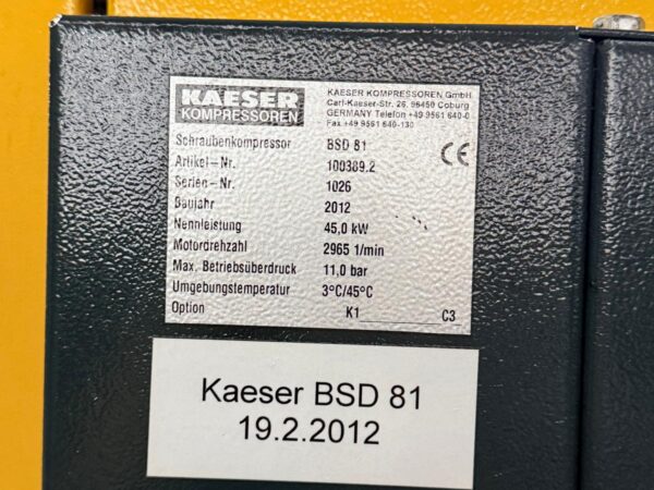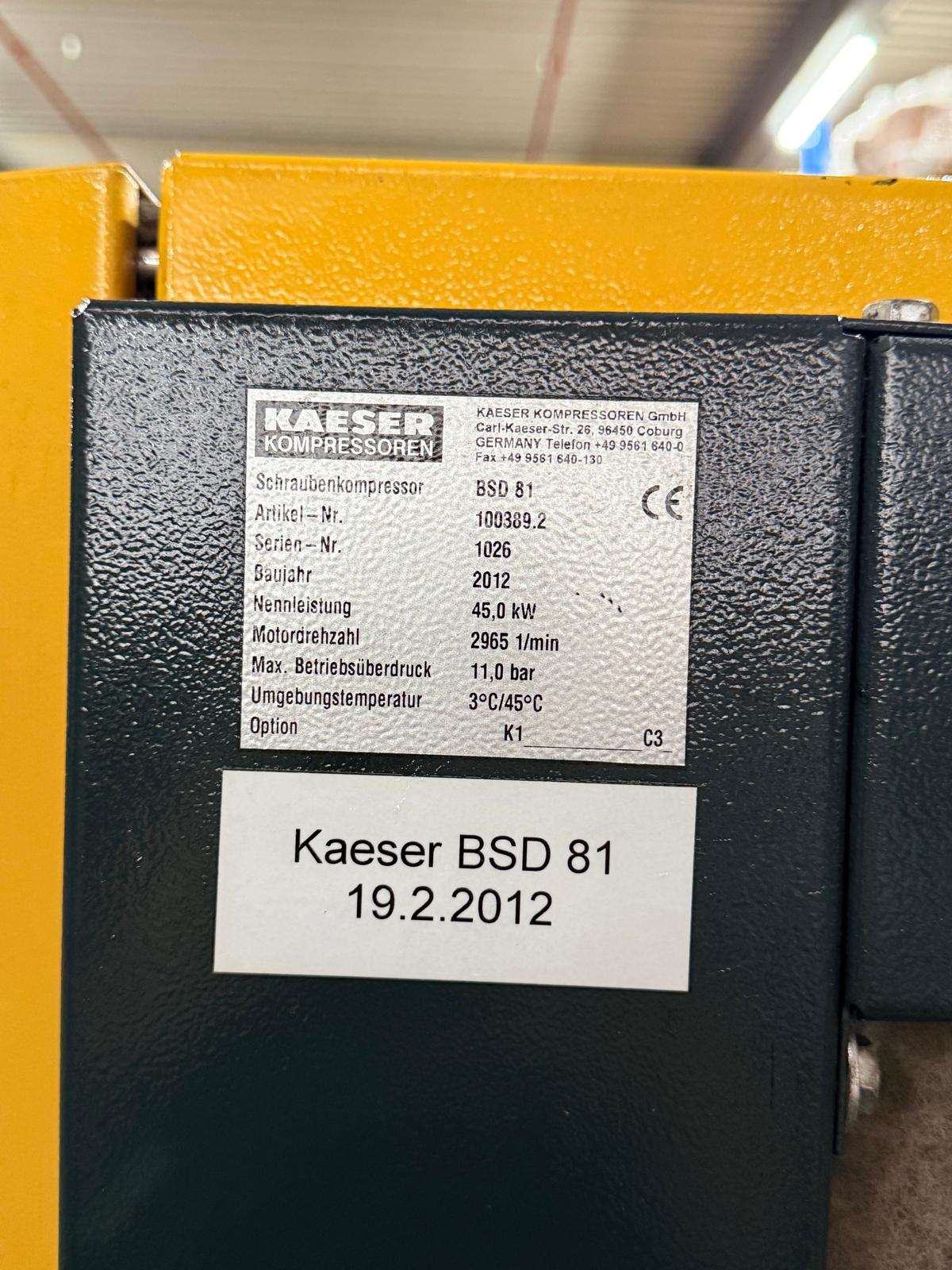 Kaeser BSD 81Category: Compressor Typ/Art: Compressor Manufacturer: Kaeser Model: BSD 81 M-No.: 100389.2 Year of construction: 2012Format: 11 Bar Details: With Cooling Dryer Ref-NO.: comp-Käser-BSD Price on enquiry Request an offer Request on Whatsapp Share machine: share on Facebook share on Linkedin share at WhatsApp send Link as E-Mail Print this page:
