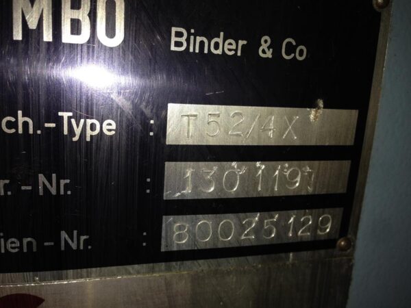 MBO T52/4XCategory: Folding Machines Typ/Art: Folding Machine Manufacturer: MBO Model: T52/4X M-No.: 130119 Year of construction: 1980Format: 52x72 Details: Serial No. 80025129, Roundpile Feeder, 4 Pockets, 1 Electronic Knife, Delivery Ref-NO.: fol-MBO-T52/4X-130119 Price on enquiry Request an offer Request on Whatsapp Share machine: share on Facebook share on Linkedin share at WhatsApp send Link as E-Mail Print this page: