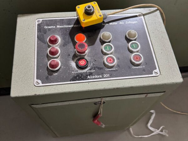Müller Martini 201Category: Gathering Machines Typ/Art: Gathering Machine Manufacturer: Müller Martini Model: 201 M-No.: 106103 Year of construction: ca. 1982Format: 450x320 Details: Gathering Machine For Sheets and Folded Signatures, 12 Stations, Hand-Feeding Stations, Criss-Cross Delivery, Format: Min. 140x100, Max. 450x320, Speed: Upto 5000 Books/Hour Ref-NO.: gath-MM-201-106103 Price on enquiry Request an offer Request on Whatsapp Share machine: share on Facebook share on Linkedin share at WhatsApp send Link as E-Mail Print this page: Machine videos