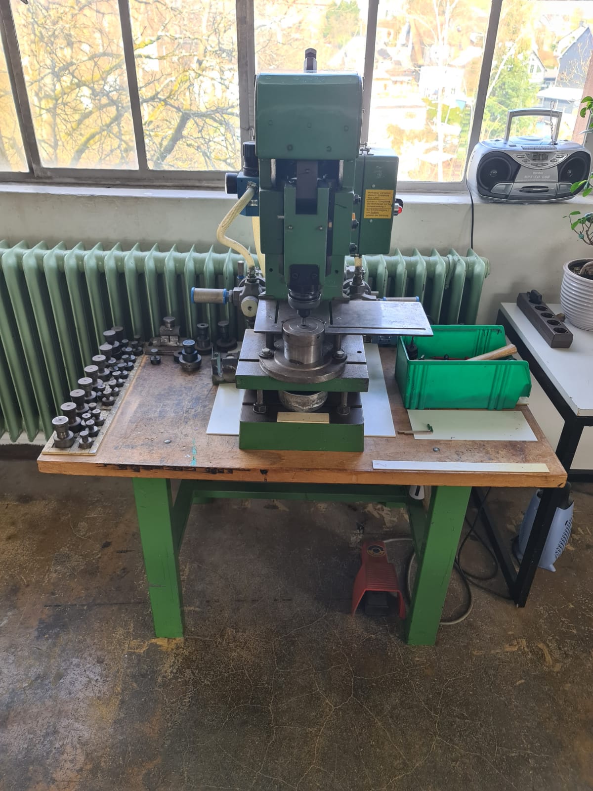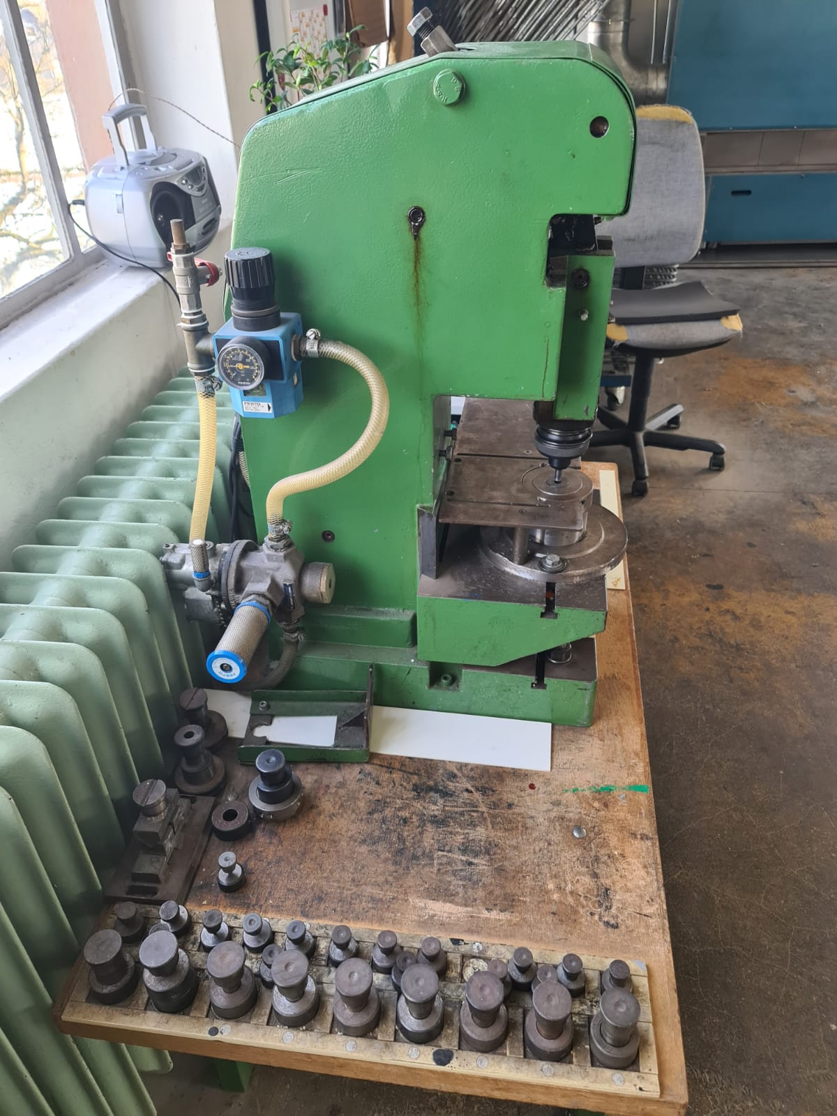 Small compressed air punch with punches and diesCategory: Mores Typ/Art: Diverse mores Details: (Kleine Druckluft-Lochstanze mit Stempel und Matrizen /Small compressed air punch with punches and dies)" Ref-NO.: more-small-compressed Price on enquiry Request an offer Request on Whatsapp Share machine: share on Facebook share on Linkedin share at WhatsApp send Link as E-Mail Print this page: Machine videos